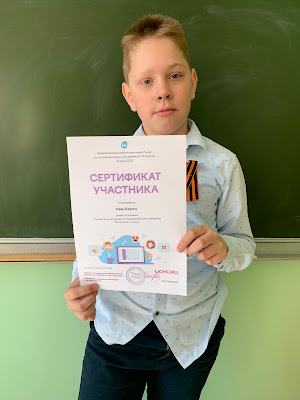 Образовательный марафон "Волшебная осень" (ноябрь 2022 - 2 место) Всероссийская олимпиада по математике на Учи.ру (ноябрь, 2022) Всероссийская олимпиада "Безопасные дороги" на Учи.ру (ноябрь, 2022)
